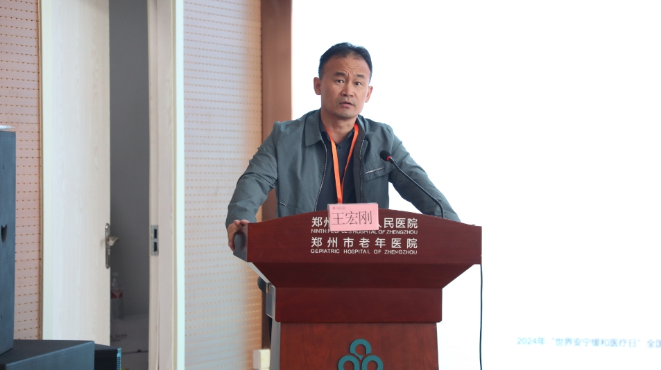 郑州市卫生健康委员会老龄健康处处长王宏刚讲话对郑州市第九人民医院在安宁疗护质控中心工作中所作出的贡献给与高度评价,他表示,作为质控中心的主委单位,郑州市第九人民医院在安宁疗护领域取得了显著的成绩,为全市乃至全省的安宁疗护工作树立了榜样。