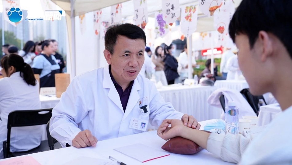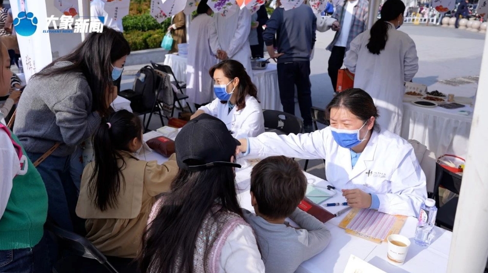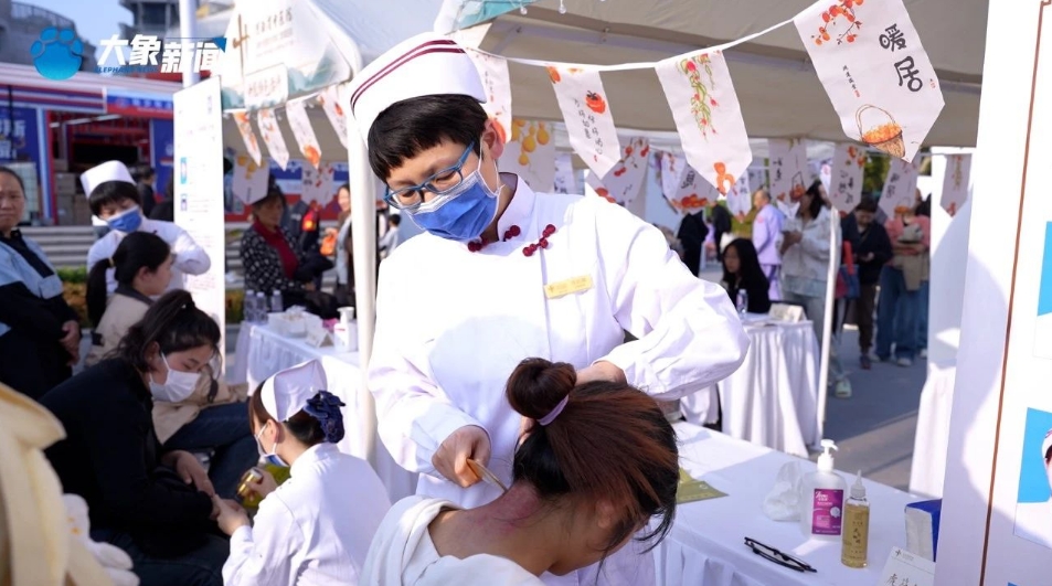 中医特色疗法体验区,刮痧、雷火灸、耳穴压豆等中医特色疗法体验吸引了更多的人群。